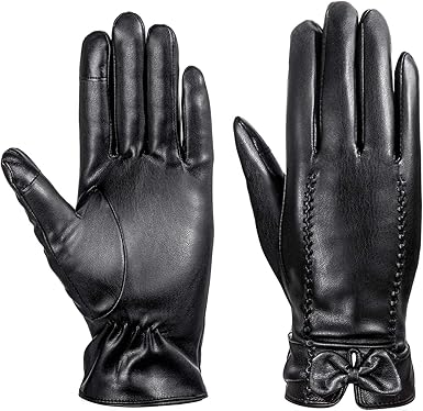 Leather Gloves Mezetihe Womens Gloves 2 Fingers Touch Screen Warm