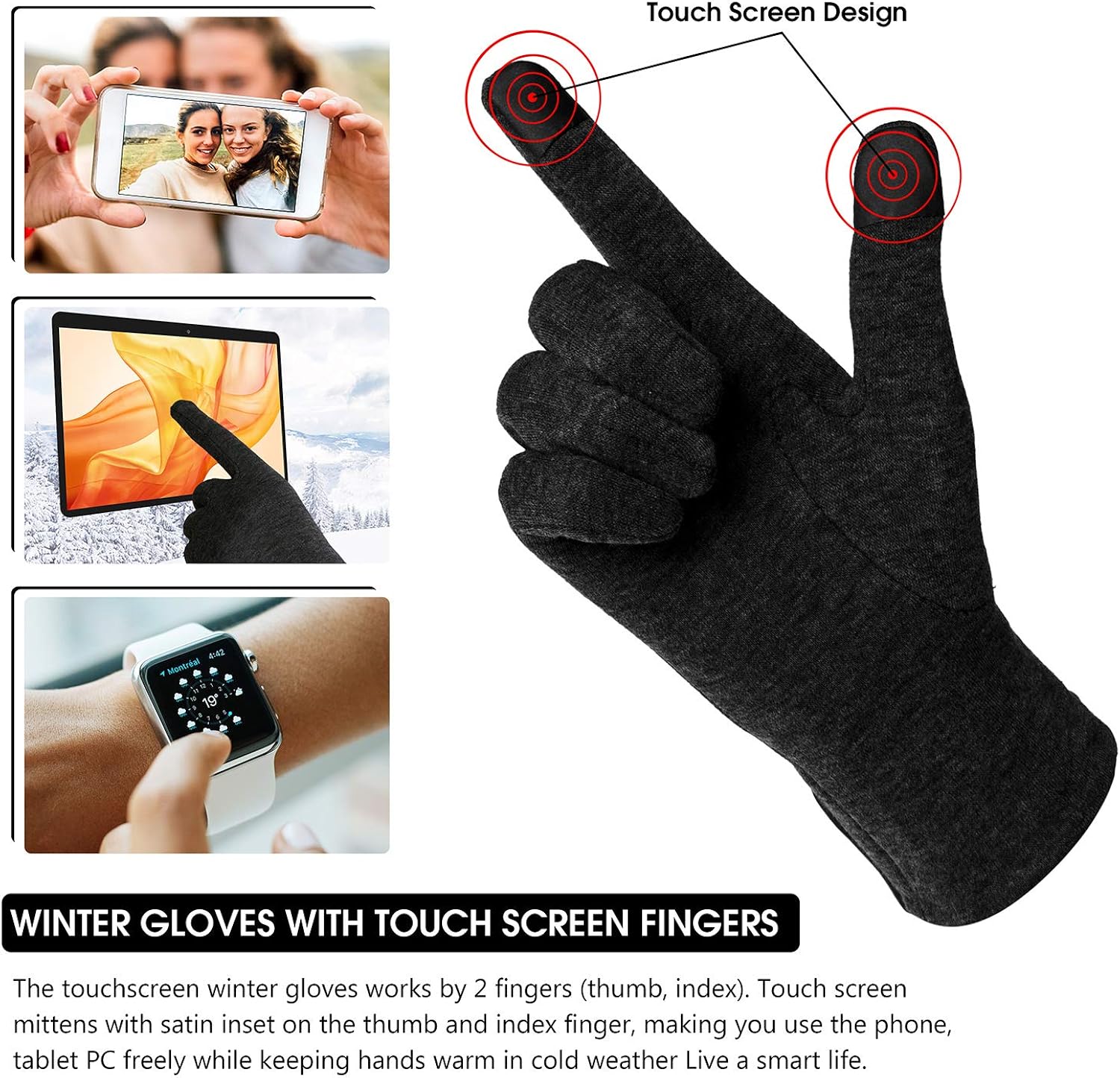 200p Men Women Winter Lightweight 2 Finger Touch Screen Gloves