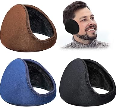 2x Black Adult Men Adjustable Ear Warmers Winter Ear Muffs Behind