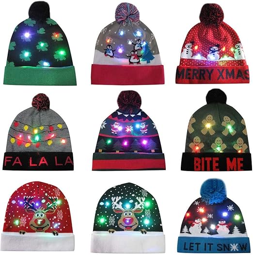 Amazon Com Kapmore Led Christmas Hat Light Up Knit Colorful