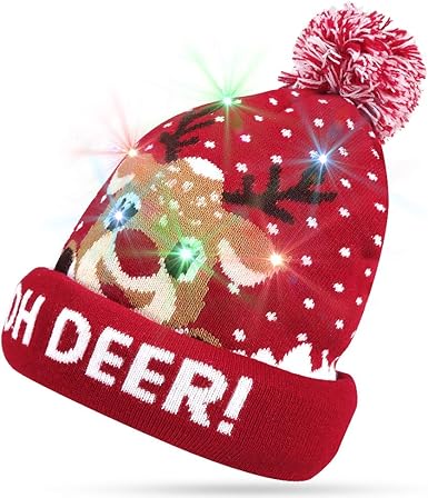 Amazon Com Konsait Xmas Hat Led Light Up Beanie Cap Winter Snow