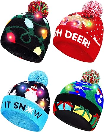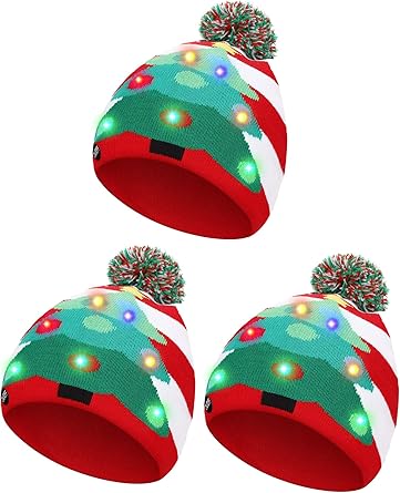 Amazon Com 3 Pieces Led Christmas Knitted Hat Light Up Xmas