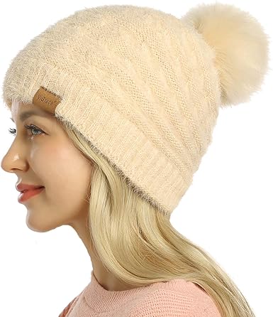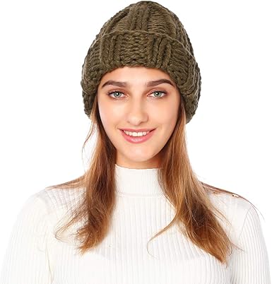G C Women Winter Hat Thick Cable Knit Hat Soft Stretch Skull Cap