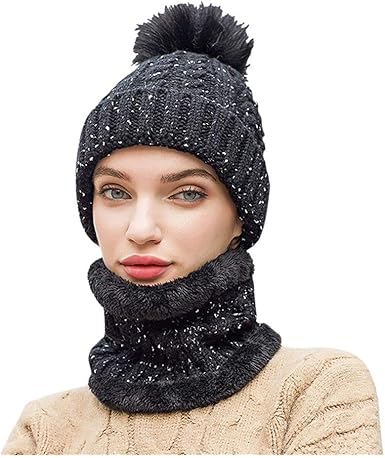 Yoyorule Fashion Women S Winter Hat Cap Collar Set Plus Velvet
