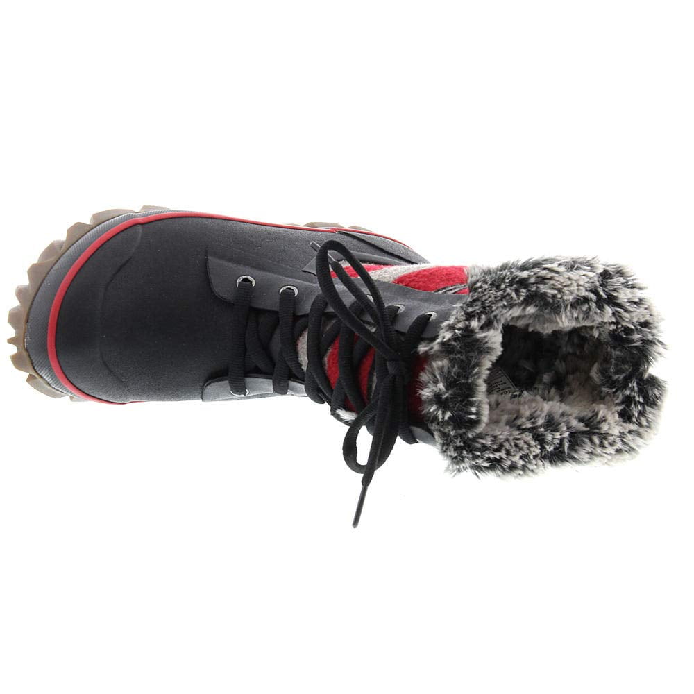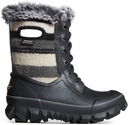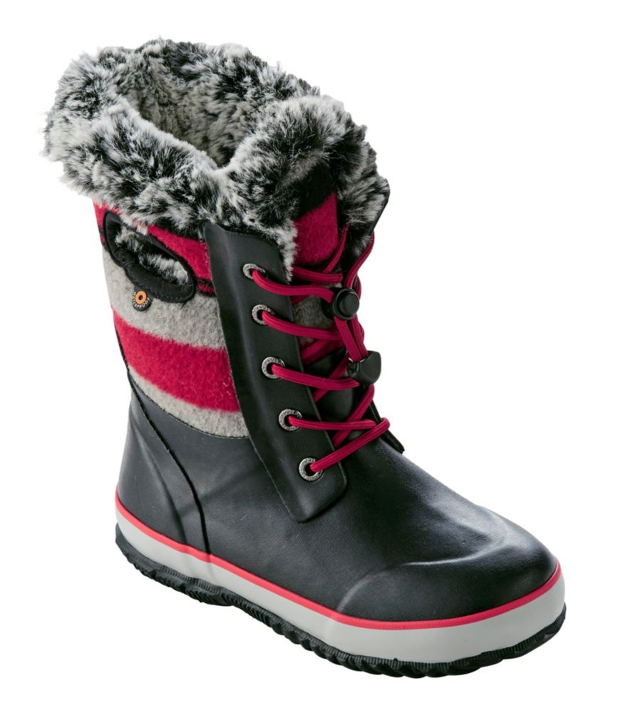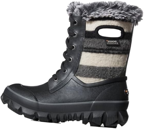 Bogs Arcata Lace Stripe Snow Boot Red Grey Black Stripes Women