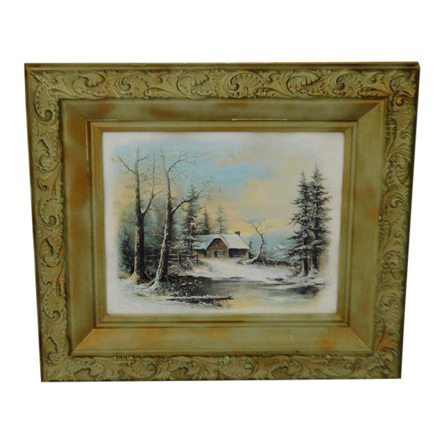 Quartersawn Tiger Oak Arts Crafts Frame Chromolithograph Snow