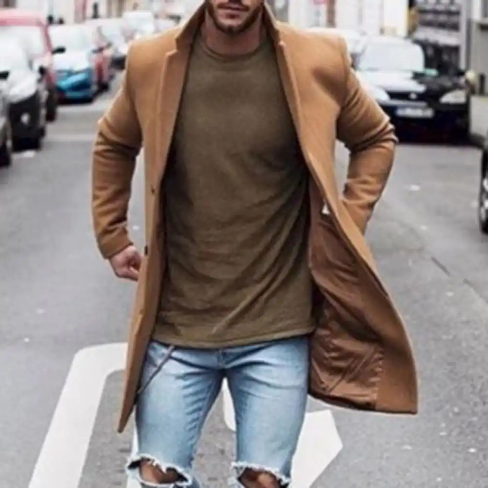 Autumn Winter Fashion Pure Color Long Warm Coat Men Plus Size