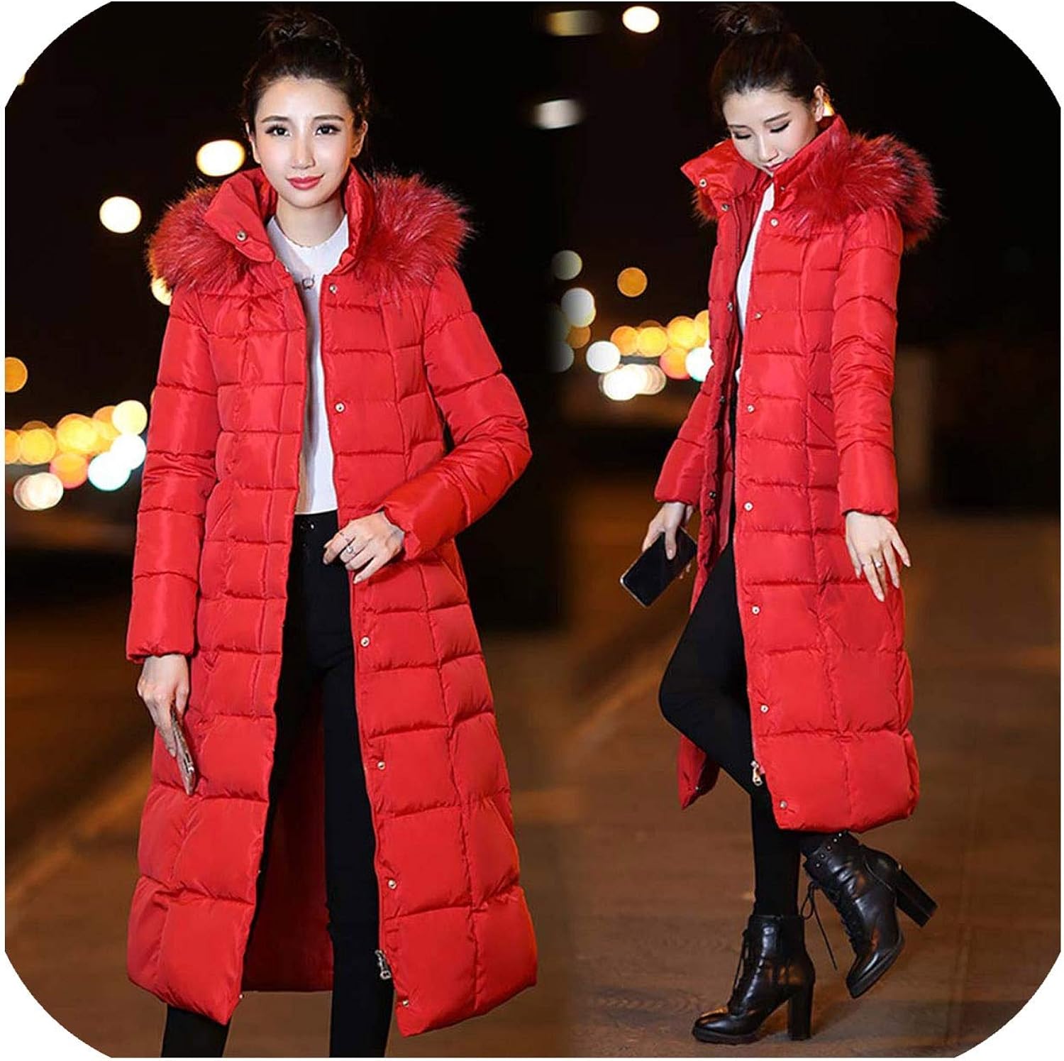 Fashion Winter Jacket For Women Big Fur Belt Hooded Thick Down