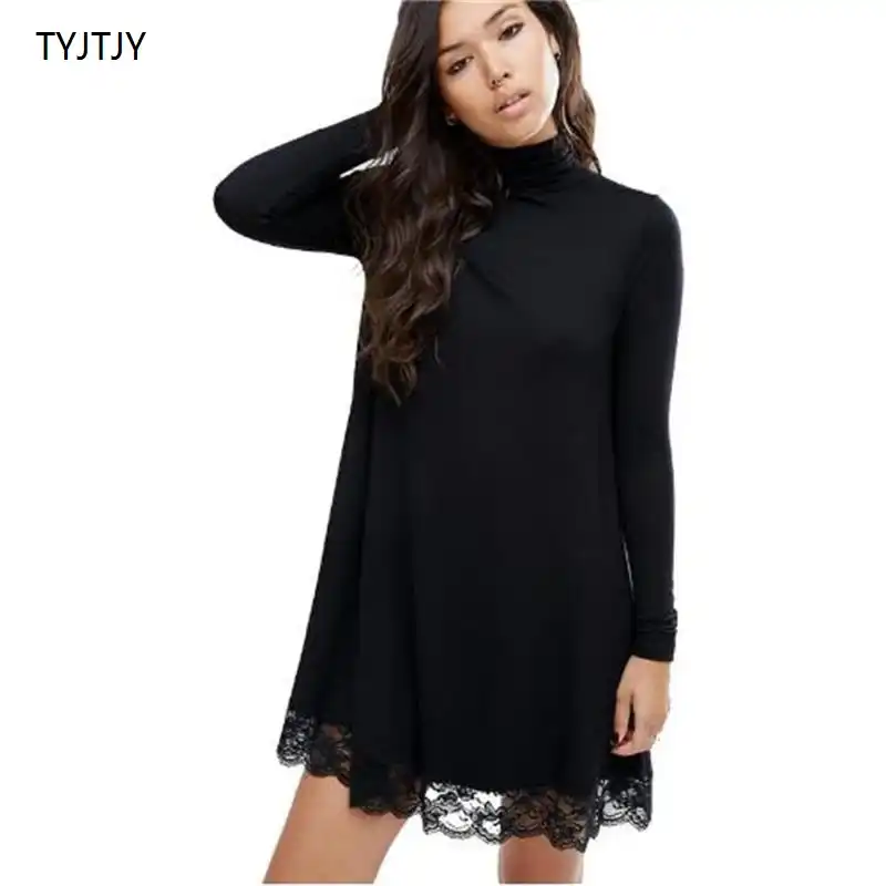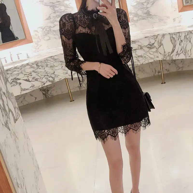 2019 Za Vintage Autumn Black Lace Dress Women Autumn Winter Dress