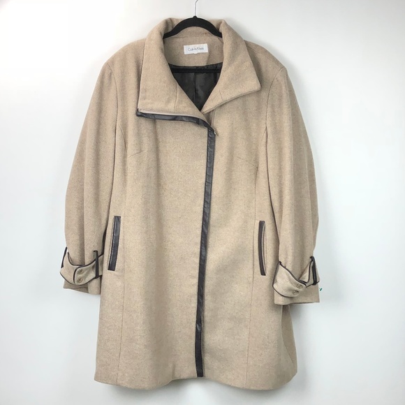 Calvin Klein Winter Down Slim Coat Faux Fur Trimmed Hooded Beige