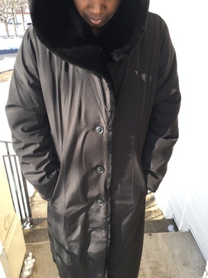 Calvin Klein Women Long Puffer Purple Hooded Faux Fur Fleece Lined