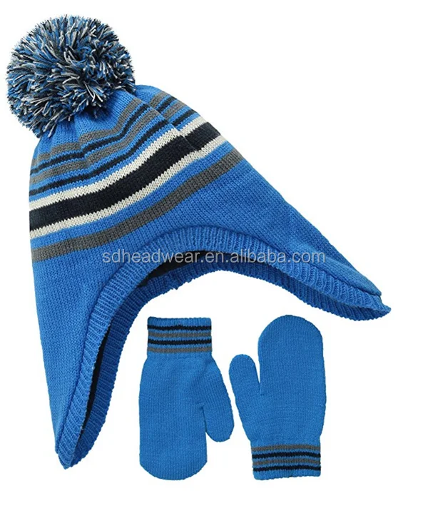 Amazon Com Boys Girls Winter Knit Fleece Pompom Beanie Hat Scarf
