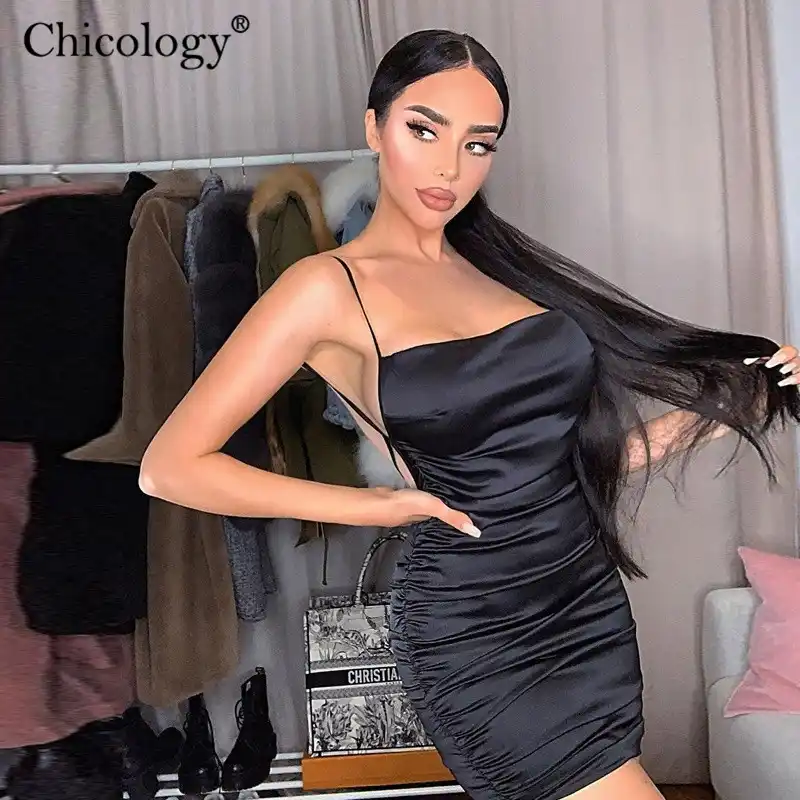 Hugcitar 2019 Sleeve Chains Patchwork Black Sexy Mini Dress Autumn