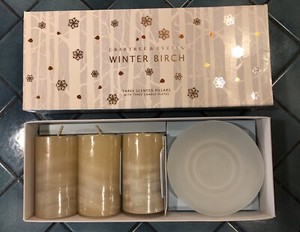 Crabtree Evelyn Winter Birch Scented White 3 Pillar Candles