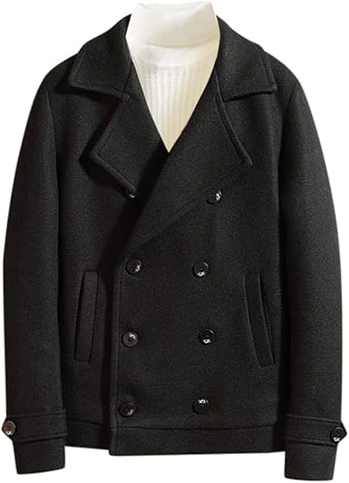Men S Woolen Double Breasted Winter Coat With A Wide Neck