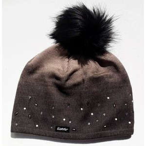 Brown Knitted Mink Fur Hat With Fur Pom Pom Women Winter Hats Cap
