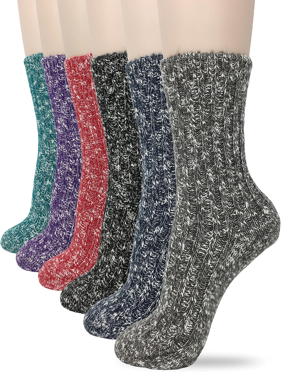 Buy 5 Pairs Women Warm Wool Socks Thick Knit Crew Socks Soft