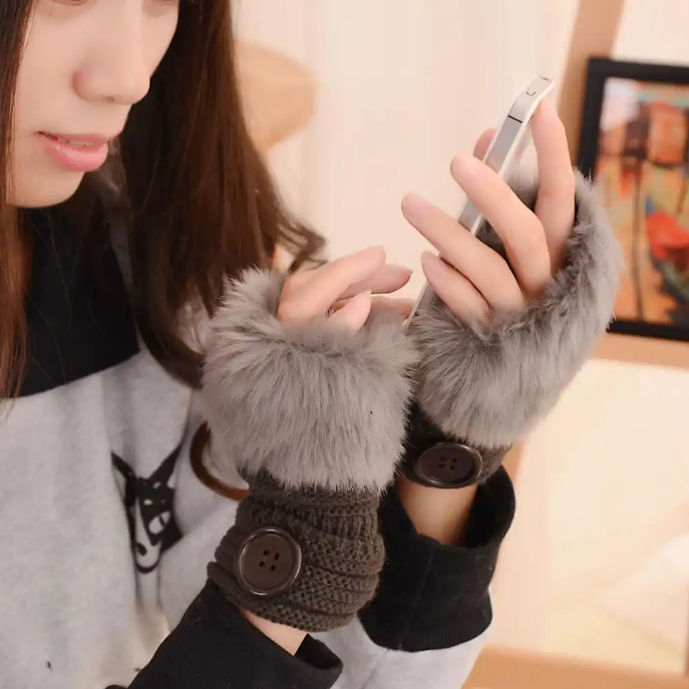 China Female Winter Gloves Fleece Thickened Wool Riding Fashion