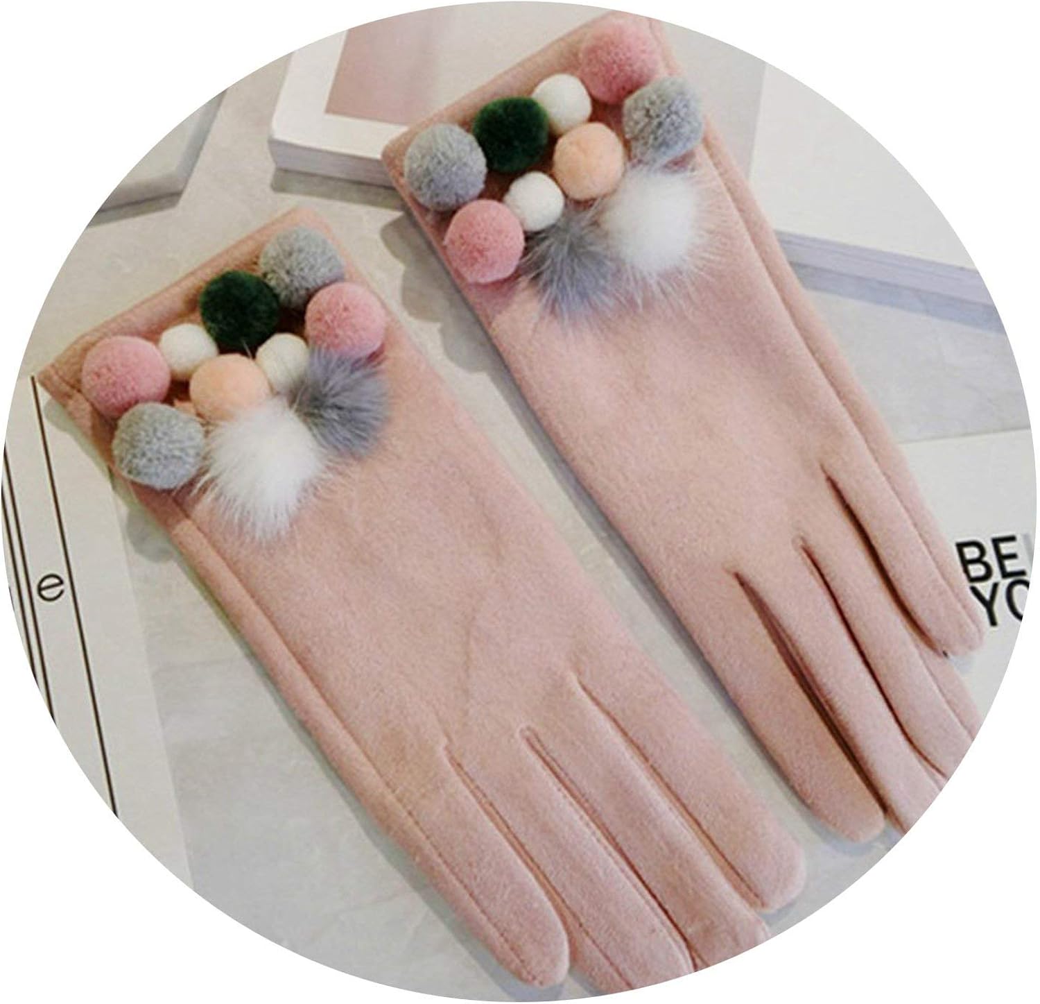 Brand Gloves Suede Leather Gloves Women Colorful Ball Winter