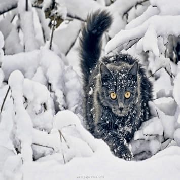 Winter Forest Cat Black Snow Free Wallpapers