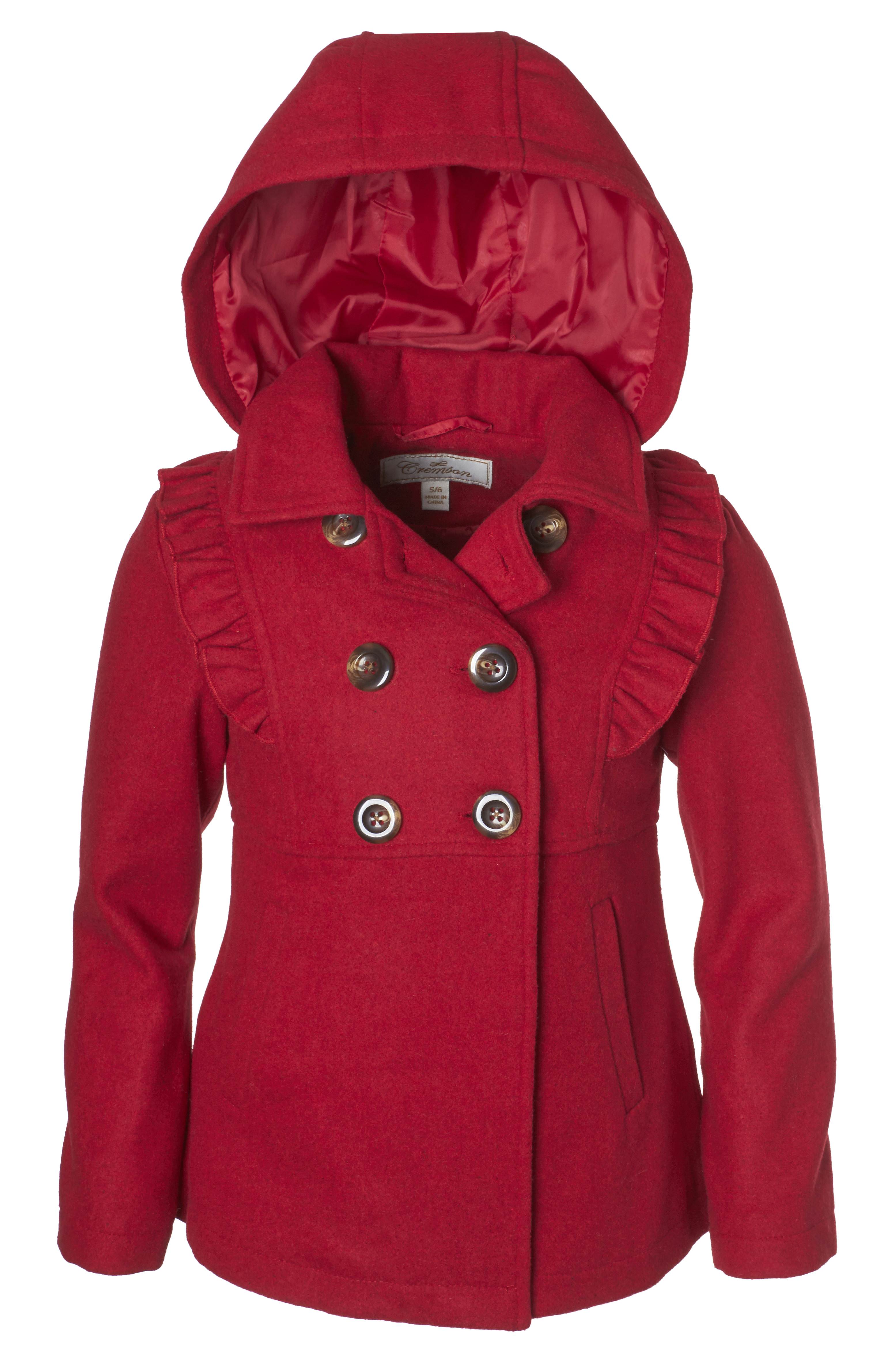 Cremson Cremson Girls Wool Blend Hooded Ruffle Winter Dress Pea