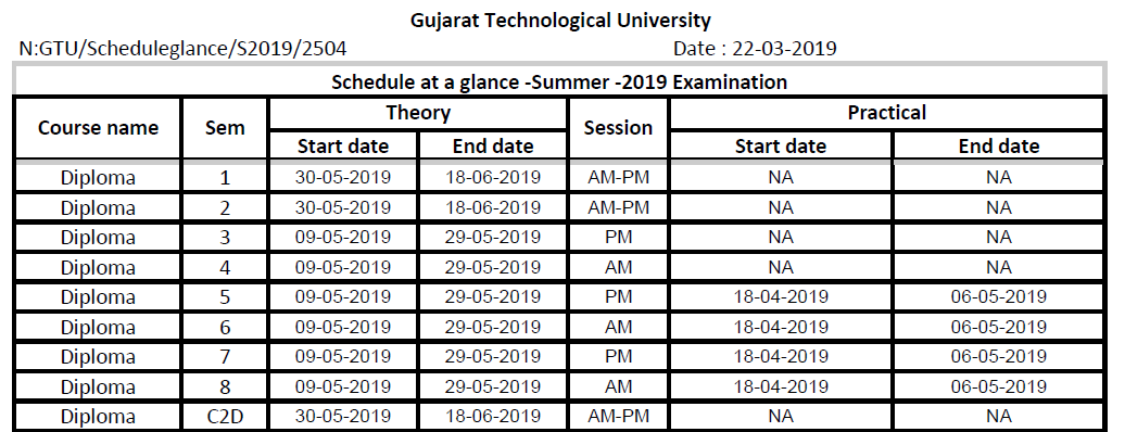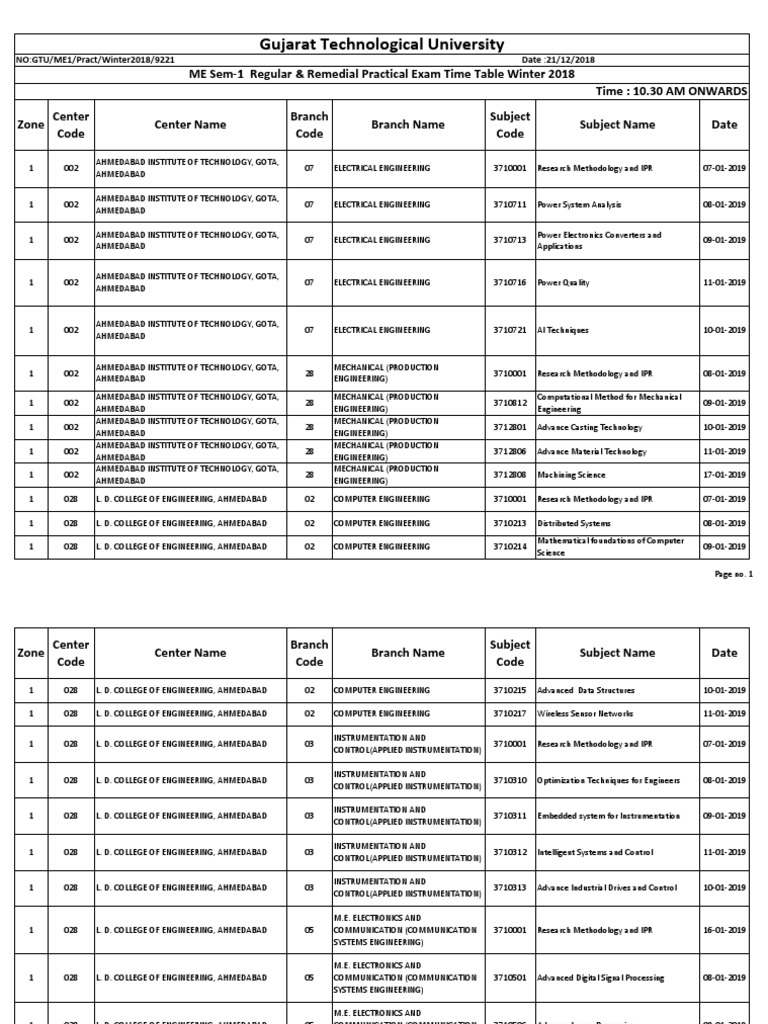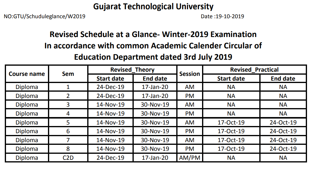 Gtu Time Table 2018 Check Gtu Summer Exam Date 2018 Gtu Ac In
