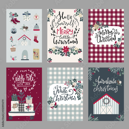Set Of Hand Drawn Winter Holidays Greeting Cards Templates With Royalty Free Cliparts Vectors And Stock Illustration Image 90587305
