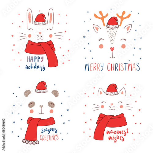 Christmas 2019 Happy New Year Greeting Card Santa And Happy Kids