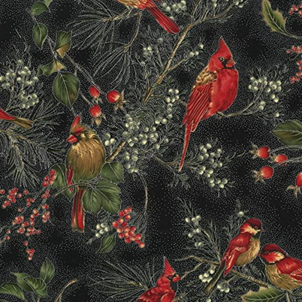 Winter Magic Cardinal Border Stripe In Cream And Gold Hof K7179