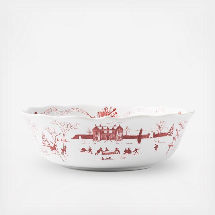 Country Estate Winter Frolic Ruby Centerpiece Bowl Christmas