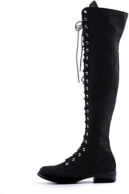 Women S Boots Black Over The Knee Boots Tie Fastening On Top High