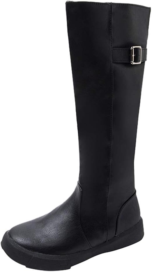 Womens Knee Boots Round Toe High Heel Ankle Strap Crystal Ladies