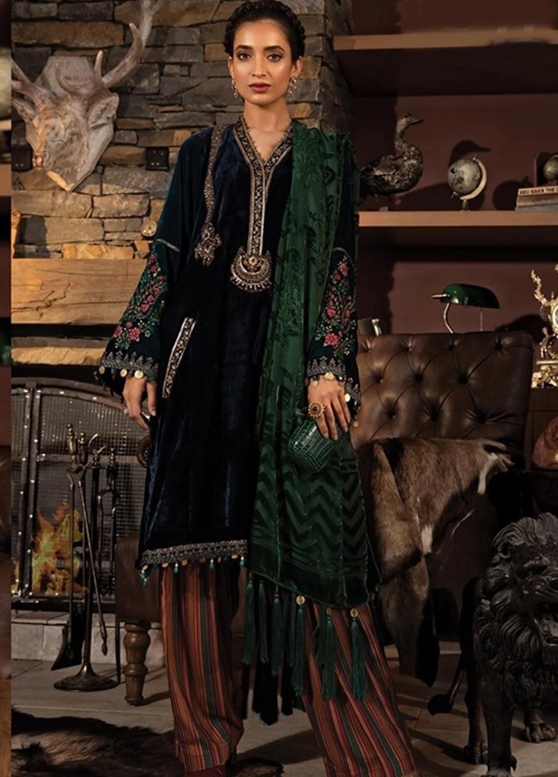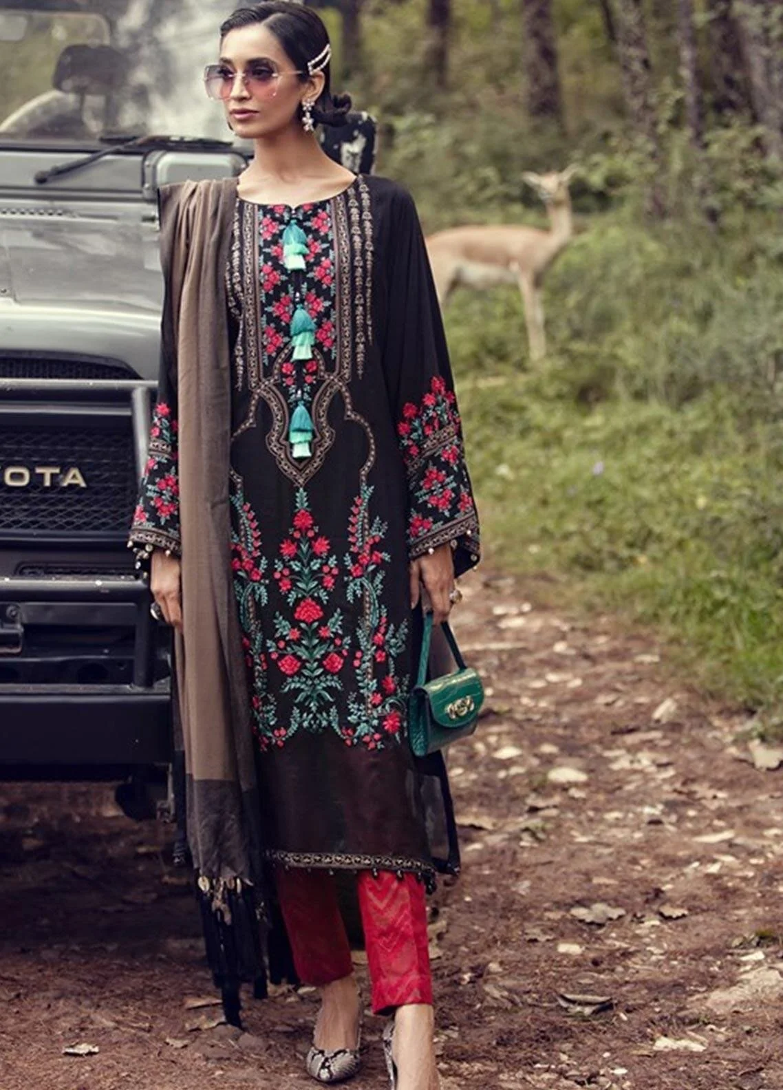 Wyfd 6520 Embroidered Designer 3pc Linen Suit With Wool Shawl