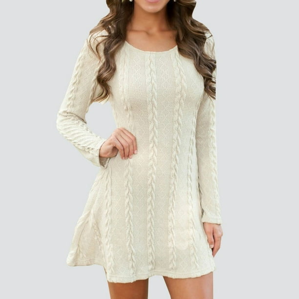 Fashion Autumn Winter Women Knitted Dresses O Neck Long Sleeve