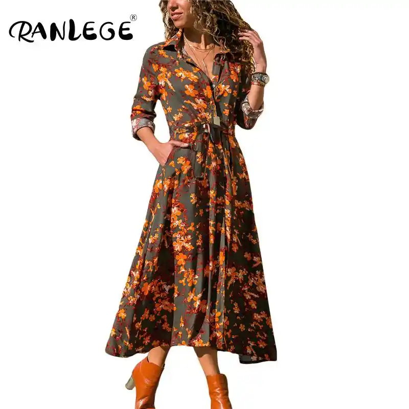 2020 2018 Autumn Long Sleeve Women Winter Dress Plus Size Leaf