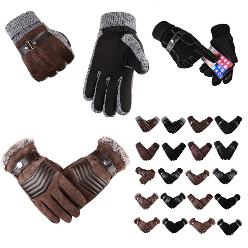 Mens Warm Winter Genuine Leather Driving Gloves