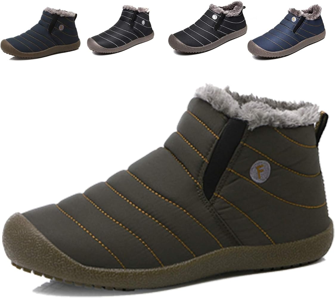 Mens Womens Slip On Winter Boots Fur Lined Outdoor Anti Slip Snow