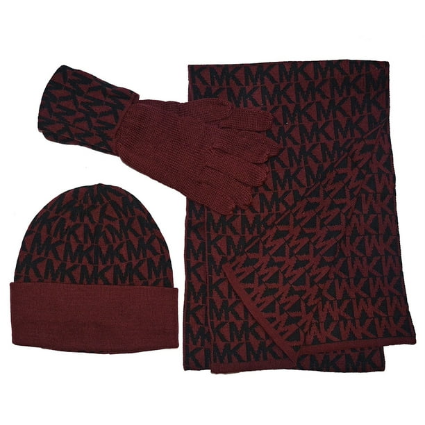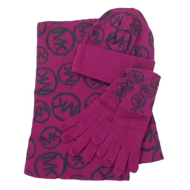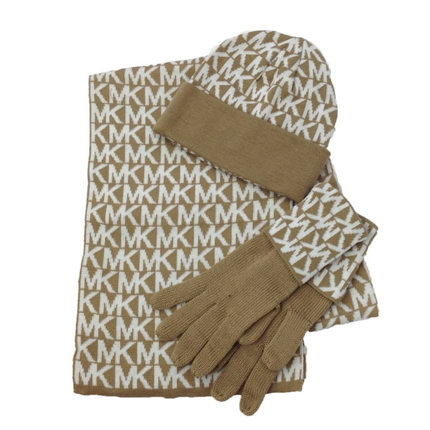 Michael Kors Repeat Mk Logo Winter Scarf Beanie Hat Gloves 3pc Set