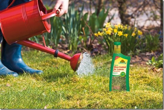 The best time to treat moss is when its actively growing. Chemical moss killers containing ferrous sulphate also called sulphate of iron are the most effective method of eradicating moss in lawns. Some chemical moss killers also include a fertiliser which is useful for lawns where the grass has lost its vigour. You want to soak the moss so apply enough cover it thoroughly.