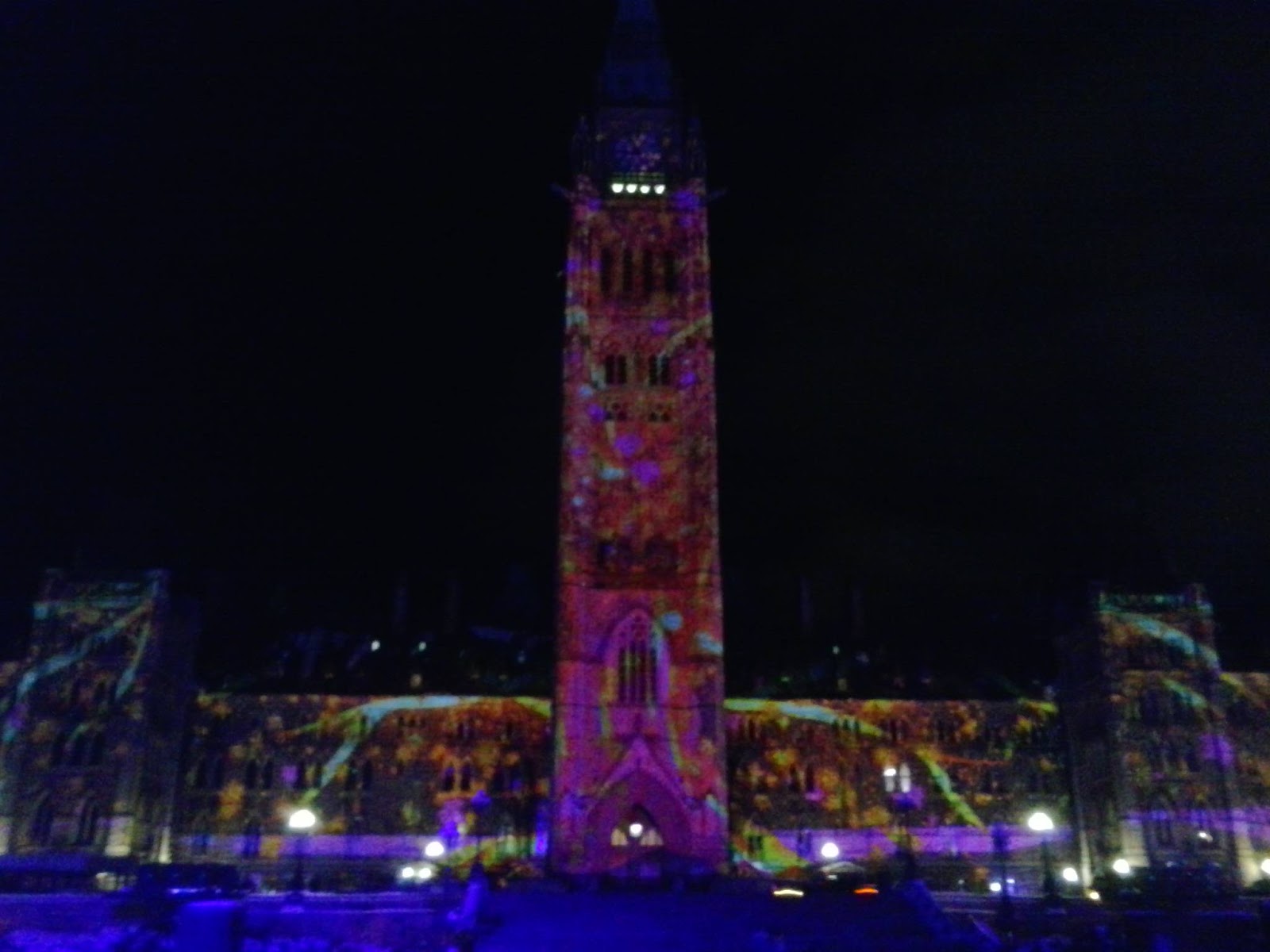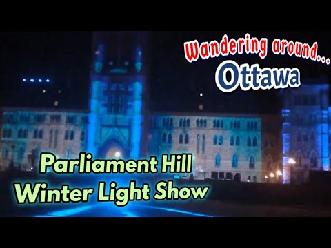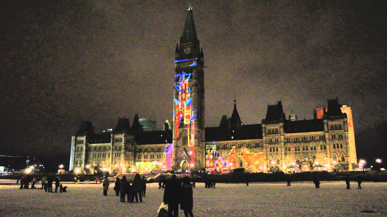 Parliament Of Canada Winter Holiday Light Show Projected At Night