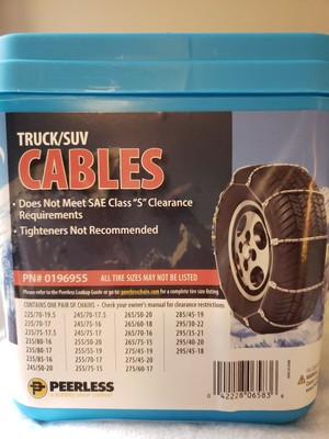 The car tire accessories have a low profile design allows them to be used on all vehicles including those that require sae. Lightweight and quiet running. Peerless winter track passenger car tire cables. New pair peerless model0172555 passenger vehicle tire cables.