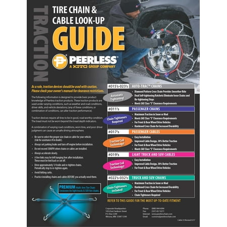 Low profile design allows them to be used on all vehicles including those that require sae. Peerless winter track passenger car tire cables 0172555 14 15 16 inch rims ebay. These peerless winter track passenger car tire cables work equally well on front and rear wheel drive vehicles. Fits tire sizes as listed and seen in the 2nd photo.