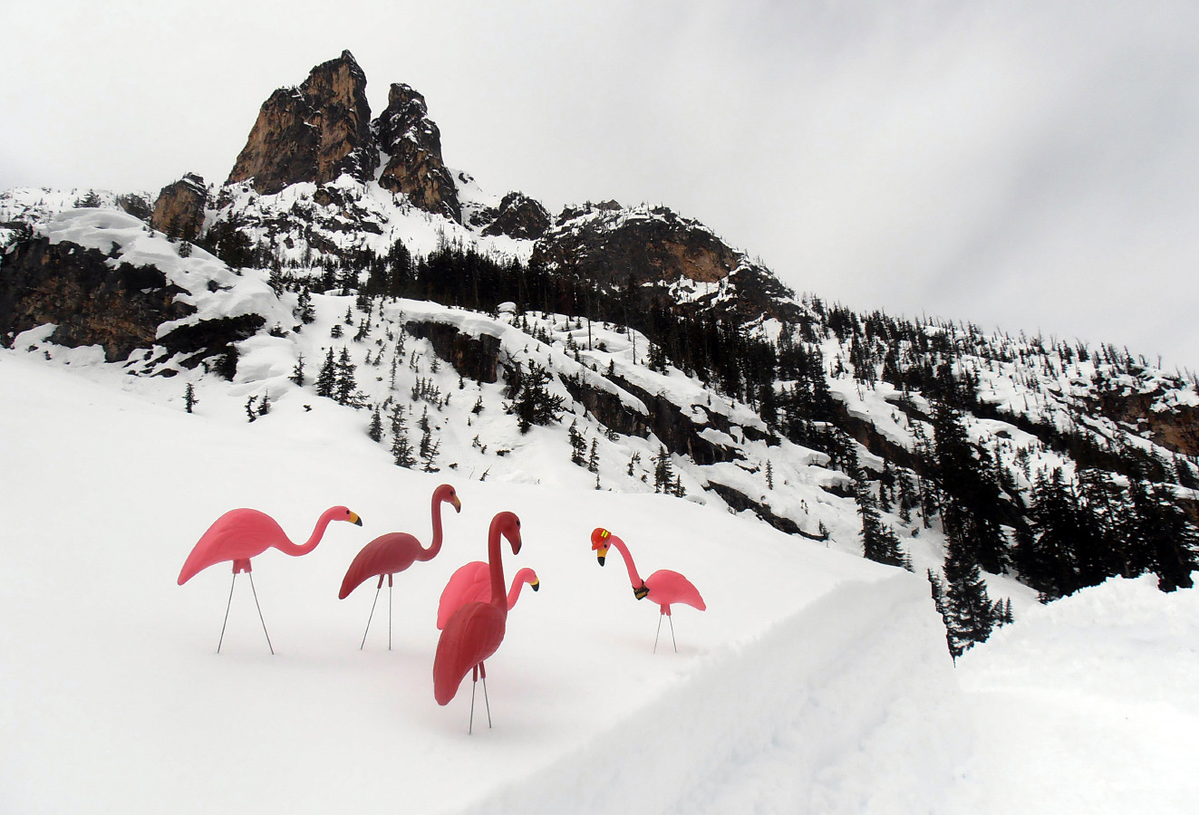 Flamingo Winter Snow Herefordshire Garden Landscape Cold