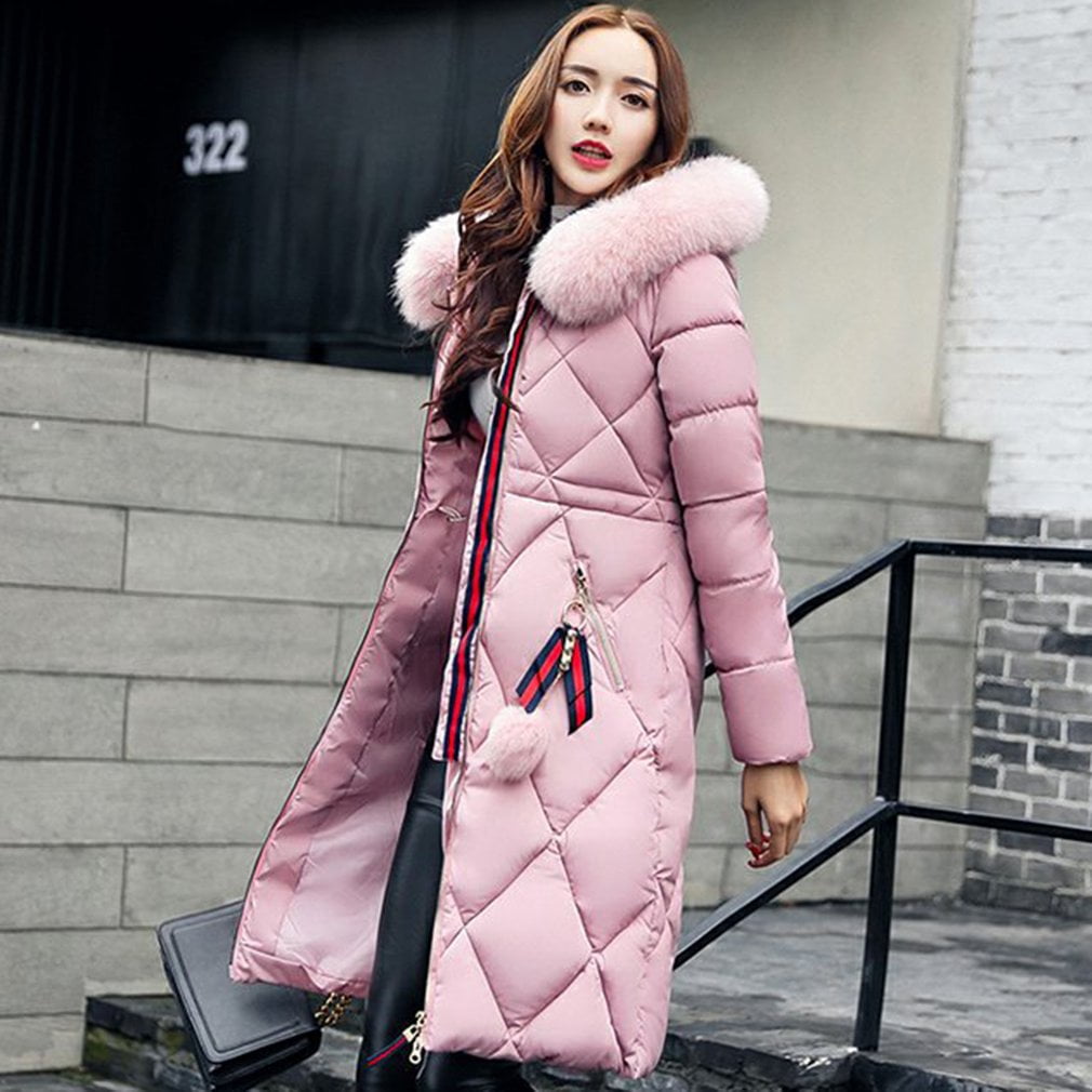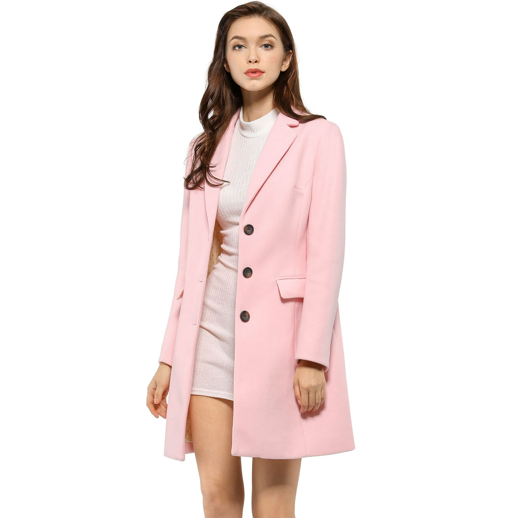 Women S Notched Lapel Single Breasted Outwear Winter Coat Pink L