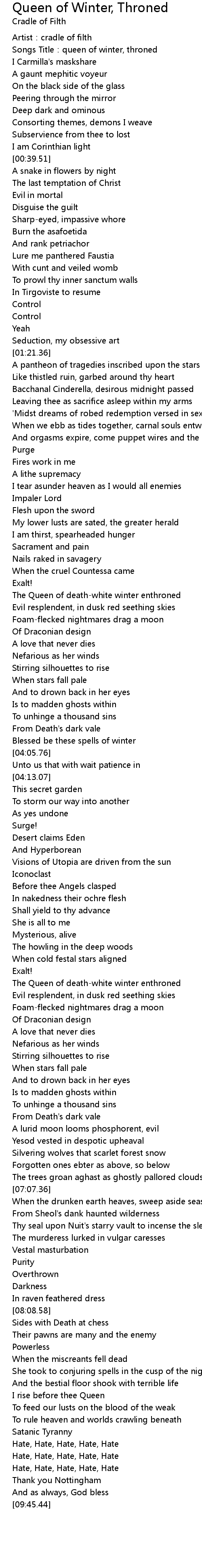 Cradle Of Filth Queen Of Winter Throned With Lyrics Black