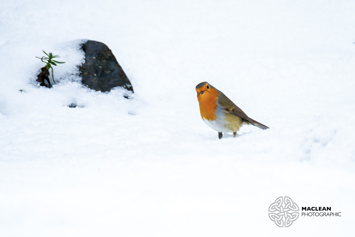 A Eurasian Robin Erithacus Rubecula Looking For Food In Snow In