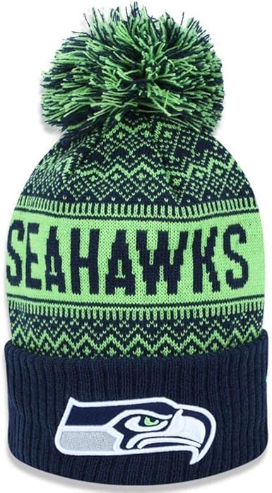Amazon Com New Era Seattle Seahawks Wintry Pom 2 Pom Knit Beanie Hat Cap Clothing