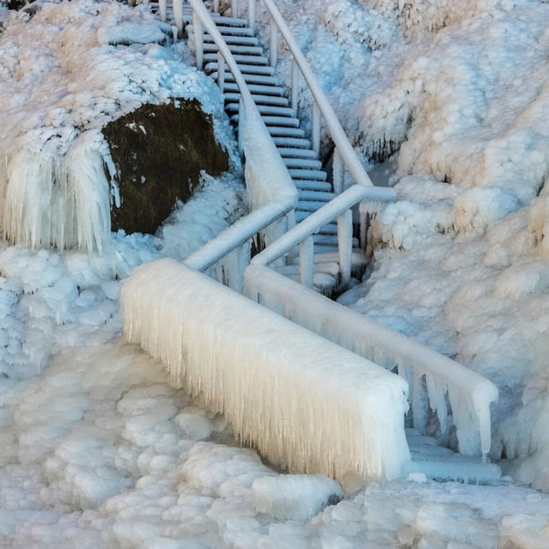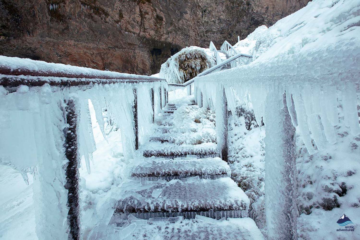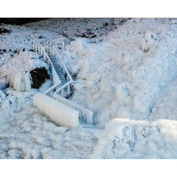 Frozen Staircase By Seljalandsfoss Waterfall In The Winter