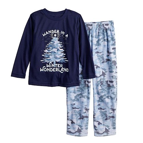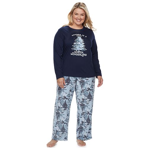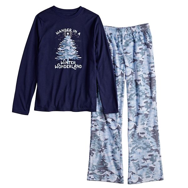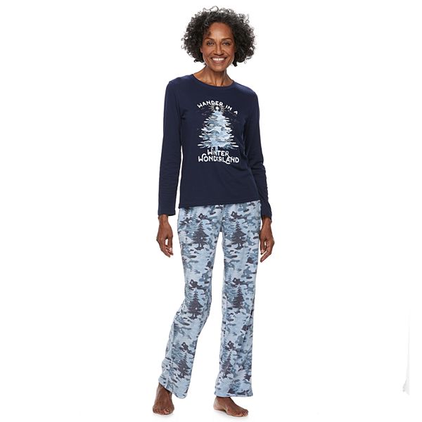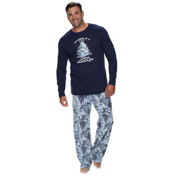 Mens Size Large 2 Pc Pajamas Navy Blue Wander In A Winter