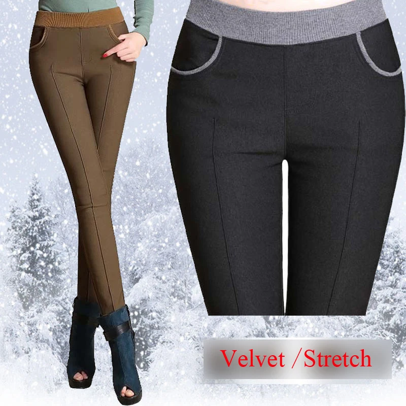2020 Winter Warm Pant Women Faux Leather Velvet Pu Pant Elastic